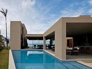 Residência, situada no litoral norte da Bahia, implantada em lote de formato irregular, entre o mar e uma lagoa. O projeto tirou partido desta irregularidade criando duas áreas de convívio social, voltadas para o entorno.