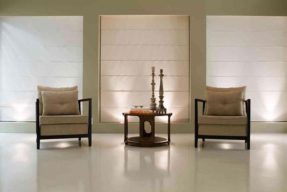 No novo espaço de 300 m², foram privilegiadas cores neutras, com predominância do branco, para evidenciar o mobiliário e os revestimentos em exposição. Elementos como o piso monolítico claro, o pé direito alto e as esquadrias de grandes dimensões deram luminosidade e amplitude ao espaço.