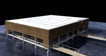 A plataforma tem uma área de 400 m², sob a qual serão instalados escritórios, que se beneficiarão da belíssima vista ao redor.