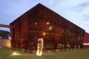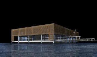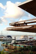 A estrutura foi criada com o objetivo de interferir pouco na paisagem de quem observa a cidade a partir do mar, utilizando-se, por isso, de madeira como revestimento externo.