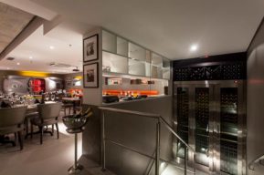 Nos pavimentos superiores está a cozinha industrial, estruturada conforme exigência legal para a atividade e áreas de armazenamentos. A conexão dos diferentes níveis é feita através de escadas e um monta-cargas. O restaurante possui também um acesso direto à loja de vinhos vizinha ao imóvel, através de uma conexão até sua adega, possibilitando que os clientes da casa possam escolher suas bebidas.