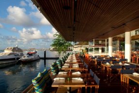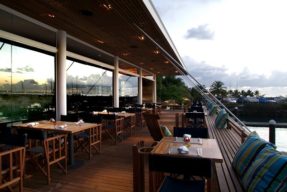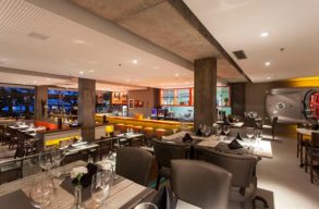 A decoração atual do restaurante Lafayette, de cozinha contemporânea, dialoga com a paisagem da Baía de Todos os Santos, que se descortina, sem obstáculos visuais, do edifício.