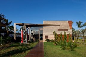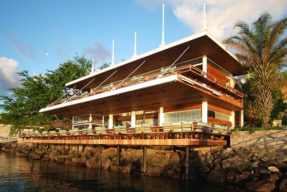 Tons de amarelo e azul pontuam os ambientes, como uma referência ao sol e ao mar da baía. Essas cores foram harmonizadas aos materiais predominantes: madeira certificada, vidro, aço e mármore branco.