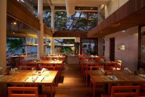 O principal fator condicionante para elaboração dos trabalhos do restaurante Soho, em Brasília, no Pontão Lago Sul foi sua localização. Para isso, buscou-se uma implantação sutil e um espaço completamente conectado com a paisagem natural do lago Paranoá que deveria permanecer como protagonista.