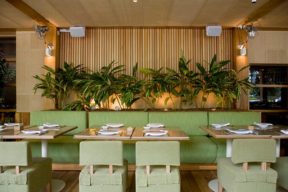 A ambientação da primeira filial do restaurante Soho, instalada no Shopping Paseo Itaigara, em Salvador, traduziu a sofisticação despojada da marca, renomada nacionalmente por sua cozinha japonesa e contemporânea. O projeto enfatizou o uso de elementos naturais como madeira, pedra e vegetação, harmonizados em composições de linhas retas. Os tons neutros dos materiais naturais foram combinados a cores vibrantes, que deram dinamismo aos diversos espaços do ambiente: sushi bar, bar da espera, salão interno, varanda e lounge.
