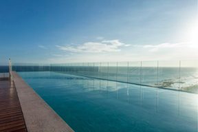 A área de lazer foi posicionada na cobertura para que os usuários pudessem desfrutar da vista, a partir a piscina, da Baía de Todos os Santos.