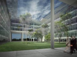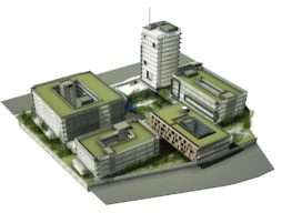 O complexo de 110.950,00m² de área construída possui 2500 vagas de estacionamento, em 3 pavimentos abaixo do nível de uso comum. No térreo, a praça/pátio central tem função primordial no projeto, pois cria um plano contínuo que permite acessos diversificados entre os 6 edifícios do campus, além de favorecer a integração entre estudantes de diferentes disciplinas sobre o mesmo pavimento.