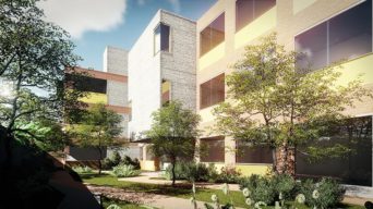 O acesso de pacientes e a recepção estão situados no térreo, junto com área de apoio aos visitantes, espaços administrativos e sala multiuso. Todos os leitos possuem sanitários, são acessíveis e estão distribuídos no térreo e pavimento superior. Já os dois subsolos abrigam área para estacionamento, carga e descarga de veículos pequenos, áreas para atividades técnicas, serviços, recreação e zona para refeições.