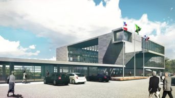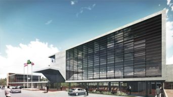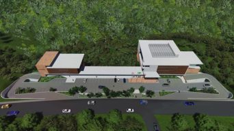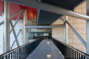 A edificação possui estrutura metálica arrojada com balanço equivalente a dez metros metros de comprimento.