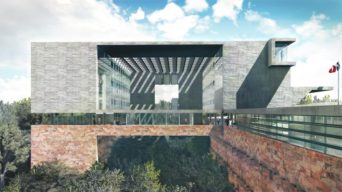 Como resultado da análise de todos os fatores condicionantes optou-se por uma implantação no sentido longitudinal do terreno, acompanhando o sentido principal das curvas de níveis. O volume esguio e comprido é constituído por duas construções principais nas extremidades, conectados através uma marquise que confere unidade formal ao projeto, serve como passarela e abriga também um restaurante uma livraria.
