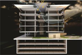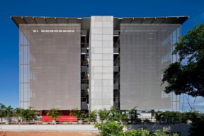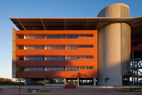 Edifício comercial de grande porte, viabilizado pelo governo do Estado da Bahia para abrigar empresas de tecnologia de pequeno porte no Parque Tecnológico. O prédio, composto por três pavimentos de garagem e seis andares de escritório, tem um grande átrio central com jardim que servirá como espaço de convívio. A fachada é pensada como elemento de proteção solar e abrigo para os nichos de ar condicionado, com o recuo da janela em relação ao terraço. As instalações estão preparadas para a instalação de placas solares e permitem o reaproveitamento de água pluvial.
