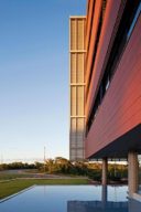 Implantado nos fundos da encosta, esse edifício se volta para toda paisagem do vale. Coincidentemente a melhor orientação visual é a mesma em relação ao conforto térmico da edificação, que corresponde à porção nascente, onde também estão incidindo os melhores ventos e, portanto foram distribuídas as áreas de trabalho. Já na fachada poente, a circulação horizontal fica completamente protegida pelo vale.