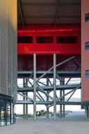 O Complexo municipal ocupa uma área com conformação em arco, no meio de construções com formas convencionais e se destaca na paisagem urbana pela sua volumetria guiada pelo formato do lote.