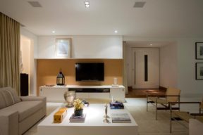 A prioridade no projeto desse apartamento de 190 m², localizado no bairro do Horto Florestal, em Salvador, era aliar o conforto a um visual contemporâneo. Para isso, optou-se pela integração dos ambientes na parte social, que ganhou mais amplitude, mantendo-se uma divisão de cômodos tradicional na área íntima, para maior privacidade da família.