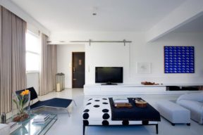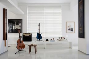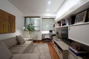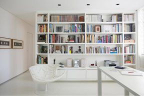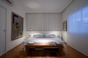 Sobre a base neutra, a personalidade dos ambientes é dada pelas obras de arte, livros e objetos, que refletem a história de vida do morador. Grandes portas deslizantes permitem que se separe ou integre ambientes, para maior versatilidade espacial.