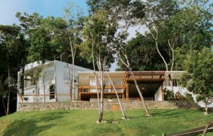 Uma característica do projeto é o desejo de integração à natureza e a preservação da vegetação existente. Para isso, uma das lajes da varanda recebeu uma abertura para passagem do tronco de uma árvore.
