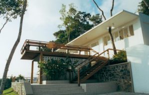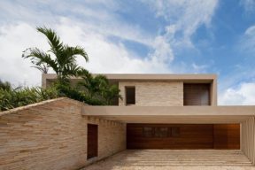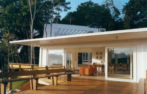 Residência, situada no litoral norte da Bahia, implantada em lote de formato irregular, entre o mar e uma lagoa. O projeto tirou partido desta irregularidade criando duas áreas de convívio social, voltadas para o entorno.