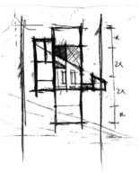 Os espaços comuns da residência foram colocados no eixo noroeste/sudeste, no sentido de permitir a contemplação da paisagem nos ambientes de maior permanência dos usuários. O setor íntimo e de serviços ficariam ao sul do lote, em dois volumes, aproveitando as melhores orientações de ventilação e ensolejamento para os dormitórios. Já o pavilhão de hóspedes funcionaria independentemente ao norte do sítio.