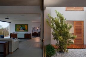 A topografia peculiar do terreno foi a grande norteadora do projeto desta residência de 300 m² de área construída, em condomínio no litoral norte da Bahia.